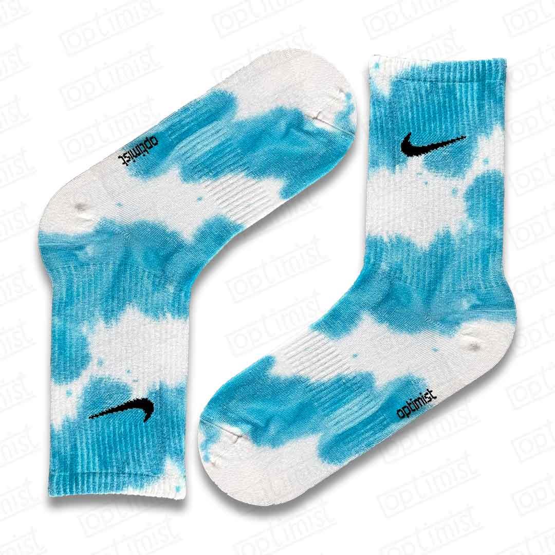 جوراب ساقدار تای دای سفید آبی