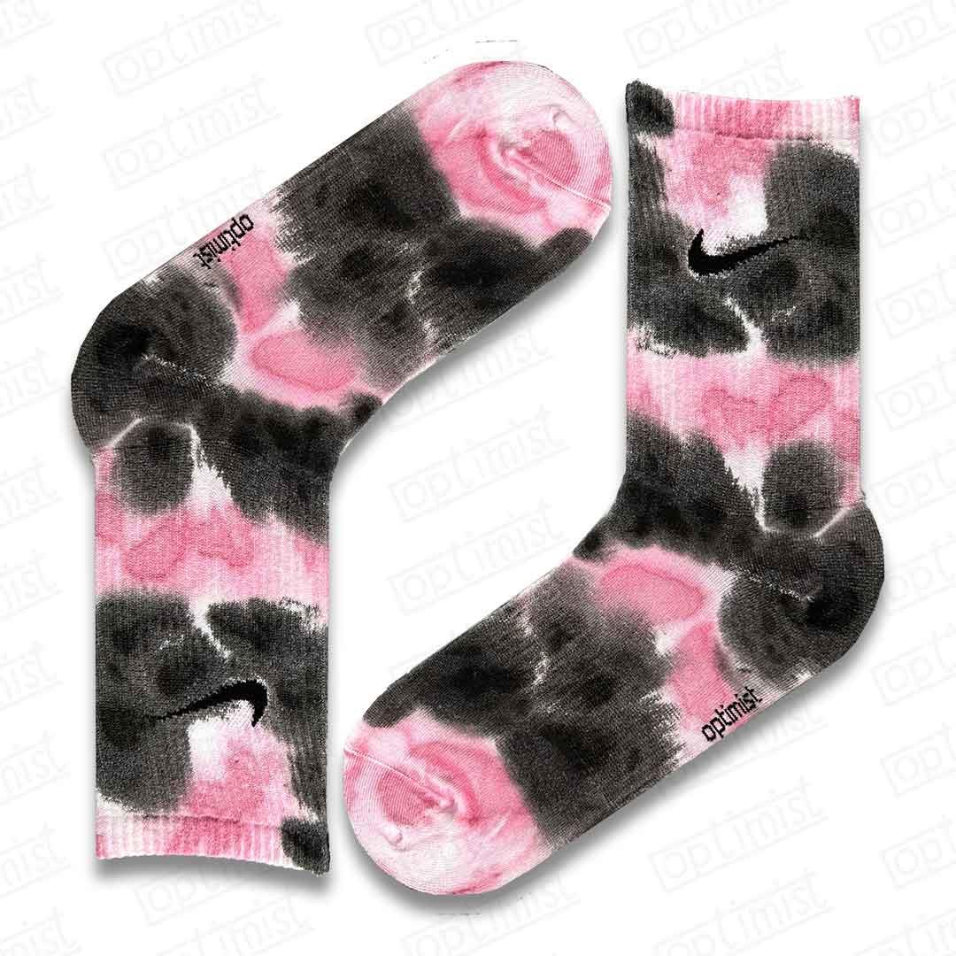 جوراب ساقدار تای دای سفید صورتی مشکی