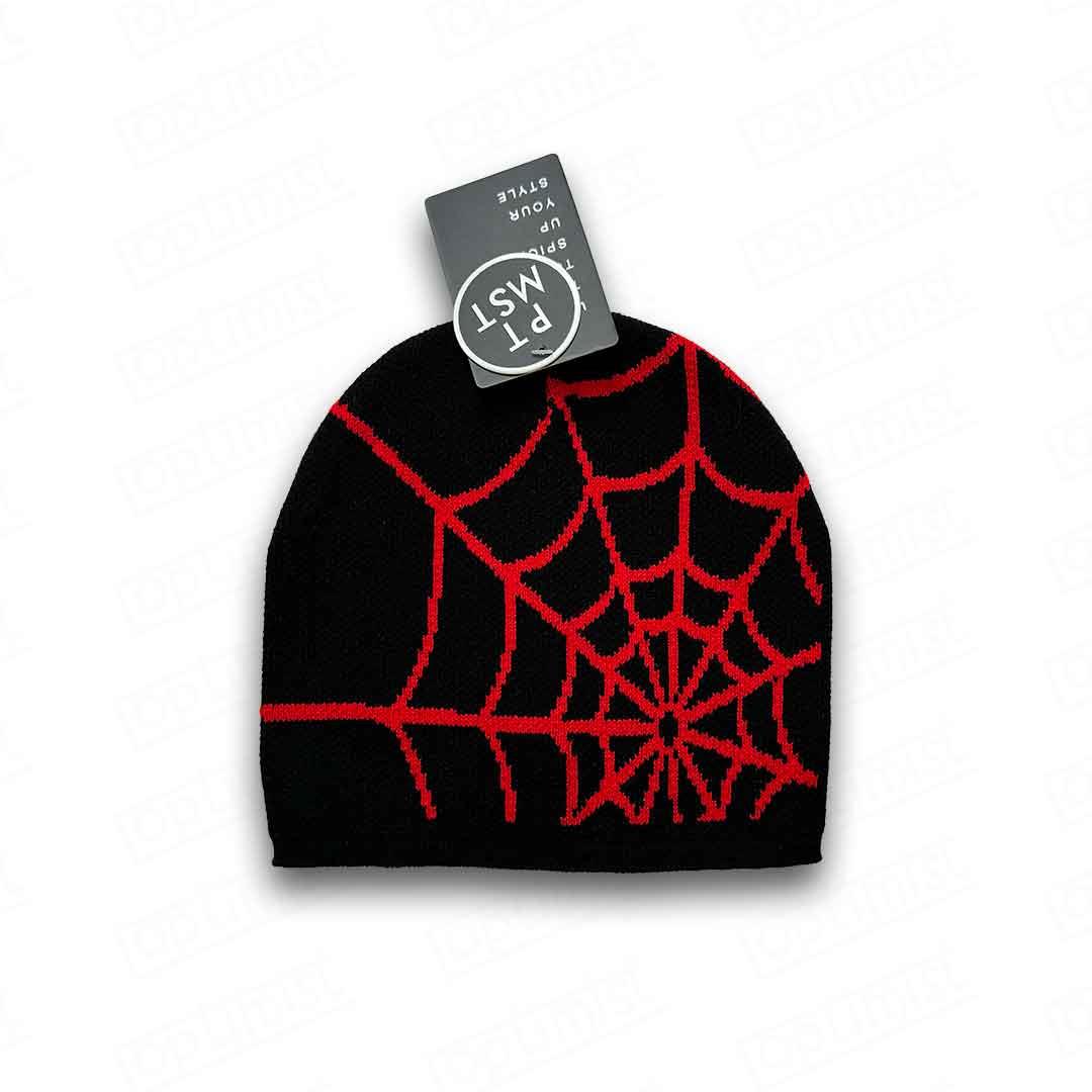 کلاه بافت بدون لبه تار عنکبوت مشکی قرمز